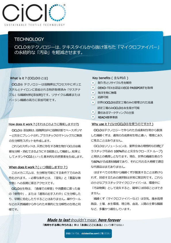CICLO生分解性ポリエステルマイクロファイバー