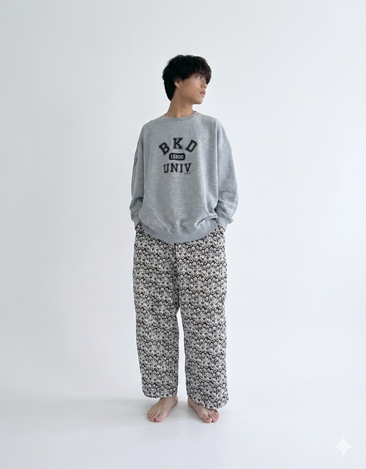 今回のコレクションは、綿ストレッチ素材をベースにインクジェットプリントと染めで構成してます。 生成AIで作る柄は、ある意味人間の発想を超えてくる(ズレてくる?)のでまだまだ飽きない可能性の尽きない分野。12流の解釈をチェックしてみてください。お馴染みATSUSHI HARATA氏とのリキッドアートのコラボレーションもあります。